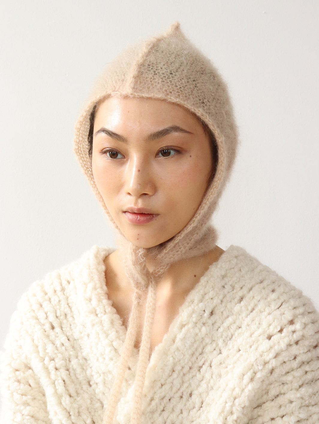 A soft, cozy hat with ribbons that wrap gently around your neck and tie beneath your chin — equal parts warmth, whimsy, and charm.