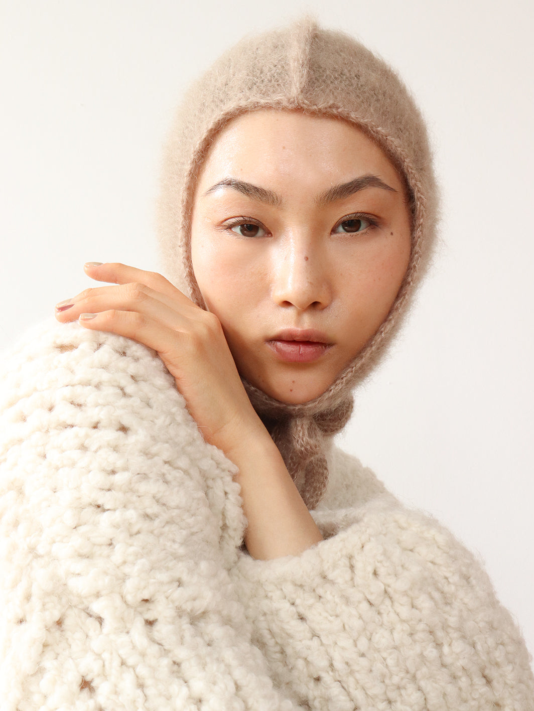 Made with superkid mohair blended with silk – a featherlight yarn.