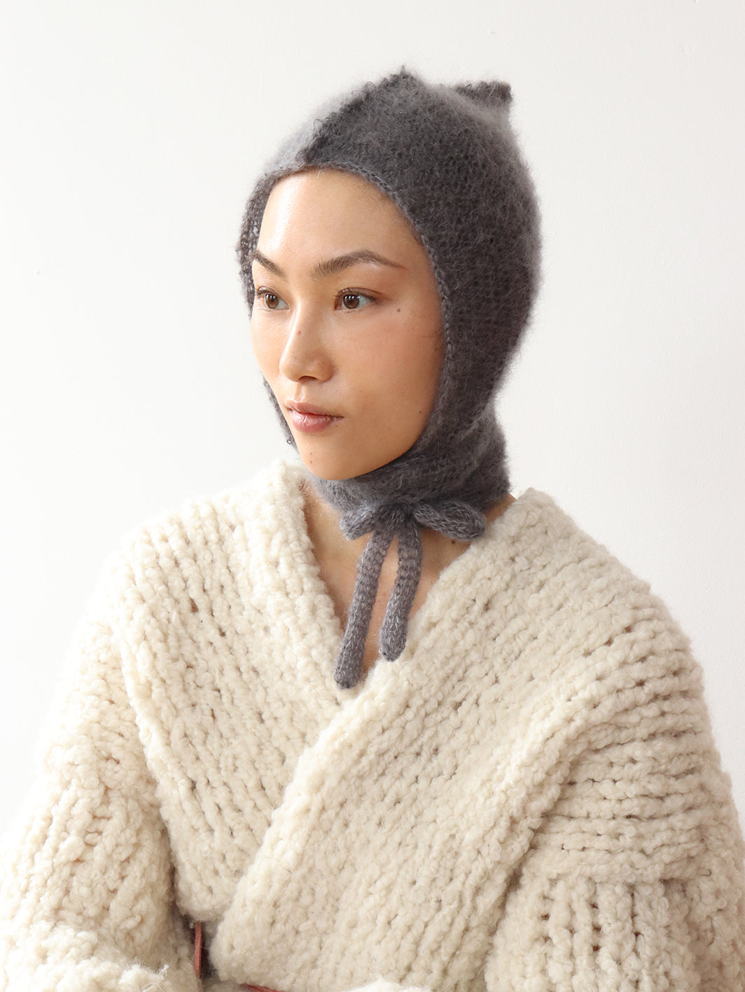 A soft, cozy hat with ribbons that wrap gently around your neck and tie beneath your chin — equal parts warmth, whimsy, and charm.
